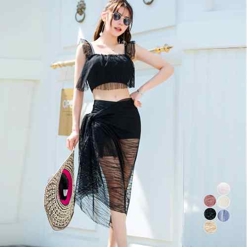 ワンピース クロシェ編み レディース オールインワン 透け 水着の上に 可愛い ワンピース 水着 日焼け防止 体型隠し ゆったり 夏 海 裾フリンジ ライン綺麗 ブラック ベージュ