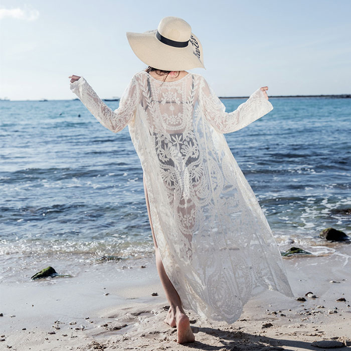 ビキニ 水着ポンチョ カバー 刺繍カーディガン 水着の上に着るビーチガウン レディース 七分袖リゾート海 ビーチカジュアル海外旅行海外セレブ トップスレース コーデ 夏 カット 日焼け対策 薄手
