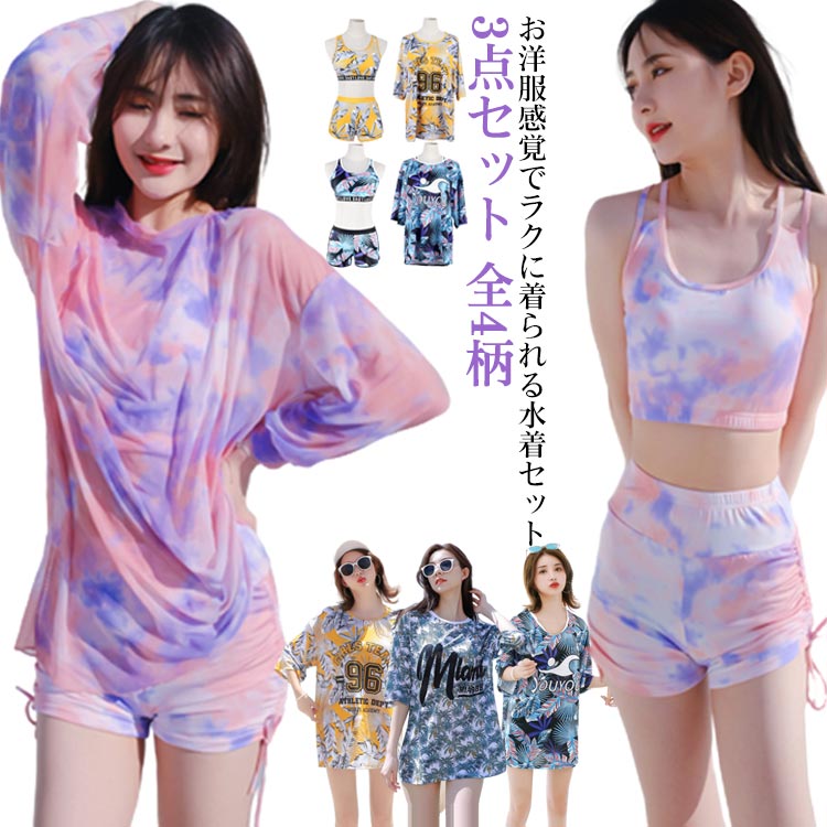 3点セット 水着 Tシャツ ブラトップ ショートパンツ Tシャツレディースファッション 水着