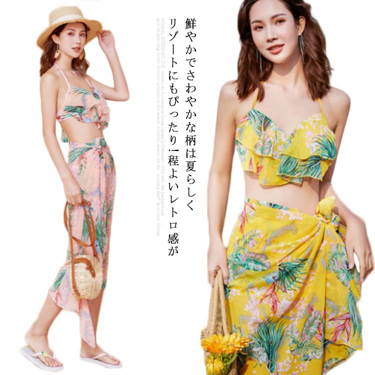 レディース 総柄水着セット 露出控えめオトナ女子 おしゃれスイムウェア 体型カバー リゾートプール ガーリーフリル水着海 盛れるフラワー水着 海水浴 ビーチ水着 セクシー ママ水着