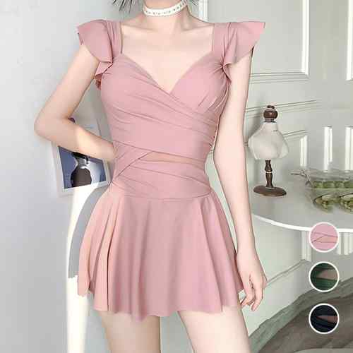 韓国風 スイムウェア リボン 体型カバー 水着 可愛い フリル セクシー クロス ストラップ水着 おしゃれ 水着 20代 盛れる プール水着 背中見せ 水着 人気 サマー 水着