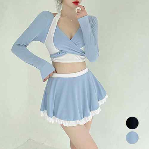 ホルターネック水着 クロスバンドゥビキニ 韓国風水着セット 長袖 ビキニスカート リゾート旅行 プール遊び ビーチ可愛い スイムウェアー 海 海水浴女の子ビキニ 水陸両用盛れる水着