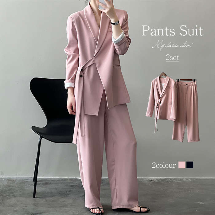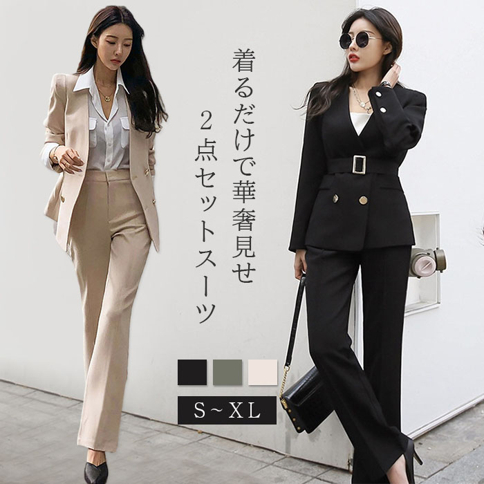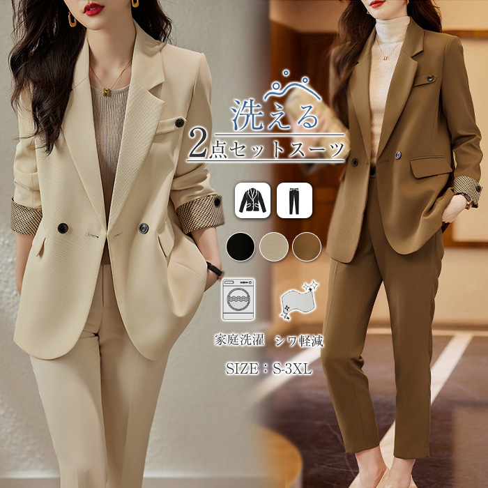 レディーススーツ スーツ&ワイドパンツ 2点セット 大きいサイズ ....2.3 ピンク ブラック 黒 ベージュ グレー 春 夏 秋 冬 オールシーズン 洗える