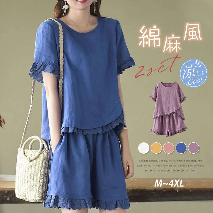 軽くて 涼しい~ リネンセットアップ Two-piece set ♪レディースファッション スーツ セットアップ パンツスーツ