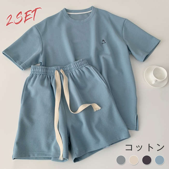 楽ちん~ 半袖tシャツ ショートパンツ 上下セット Set up 春 夏 イエロー ネイビー グレー M L XL 大きいサイズ ♪