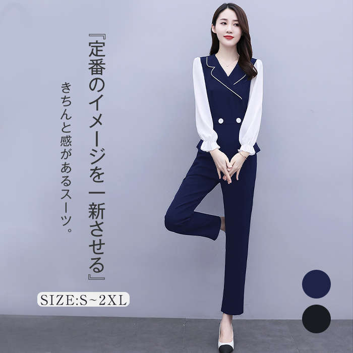 2 コーデしやすい~ シンプルデザイン パンツドレス 2点セット ♪レディースファッション スーツ セットアップ パンツスーツ