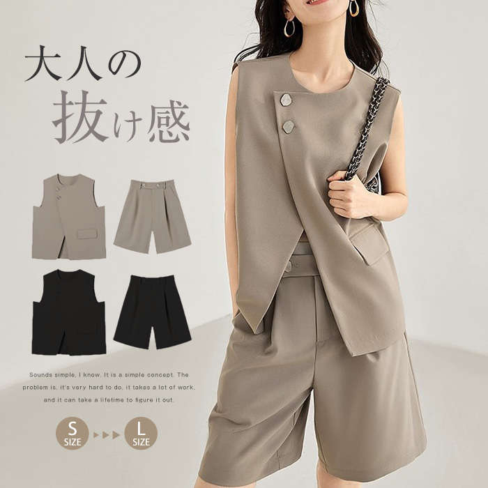 ベスト&ハーフパンツ 選べる 単品 2点セット 上下セット 上下 Set Up 春夏 春秋 ベージュ ブラック 黒 大きいサイズ S M L オフィス フォーマル 通勤 事務服 ビジネス ♪