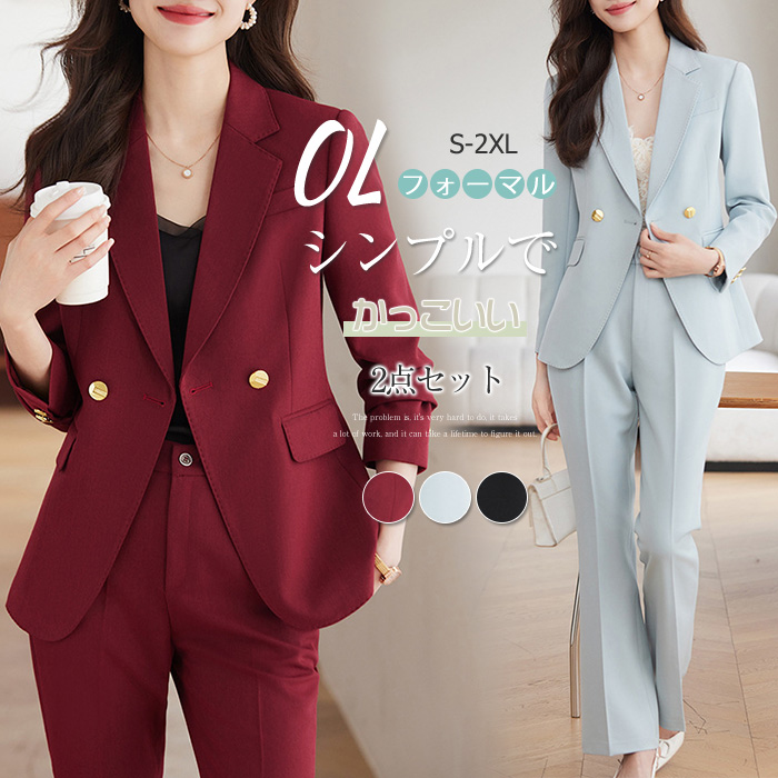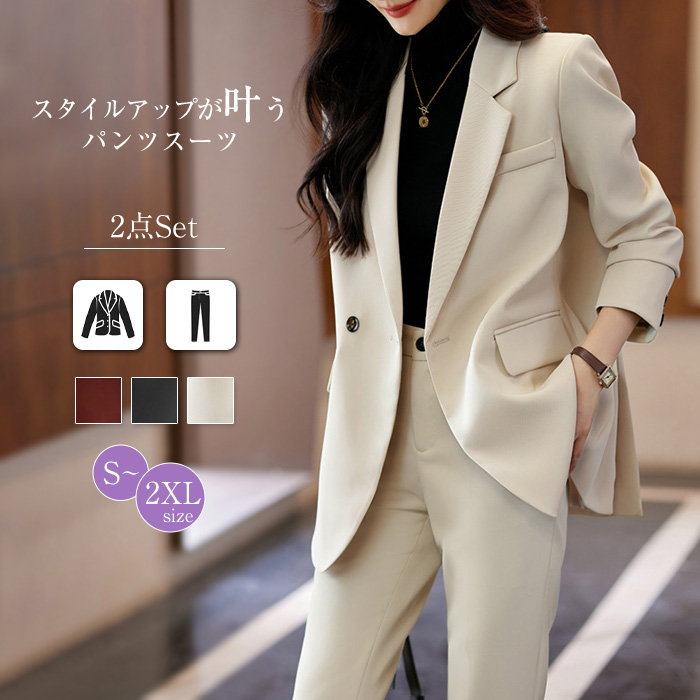 トップスとボトムの2点セットスタイルUP効果も期待できます♪ レディースファッション スーツ セットアップ パンツスーツ