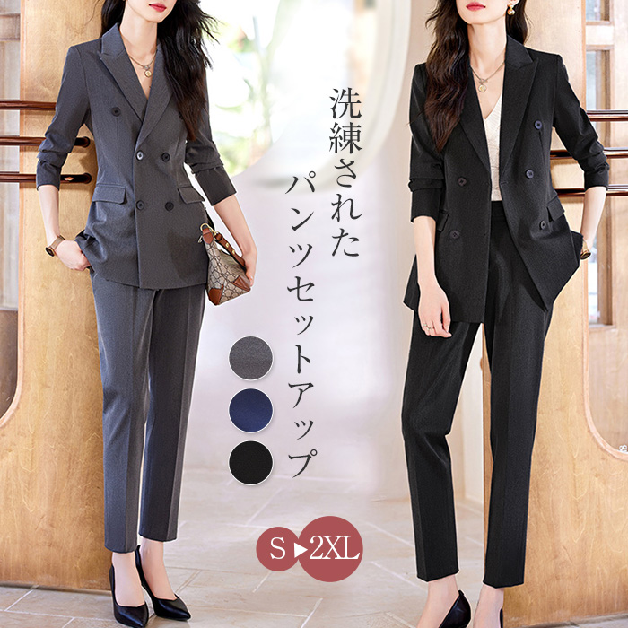 パンツスーツ 単品 2点セット セットアップ 上下 S.M.L.XL.2XL.3XL.4XL 大きいサイズ 小さいサイズ Pants Suit グレー ネイビー 黒 ブラック 春 夏 秋 冬 オールシ