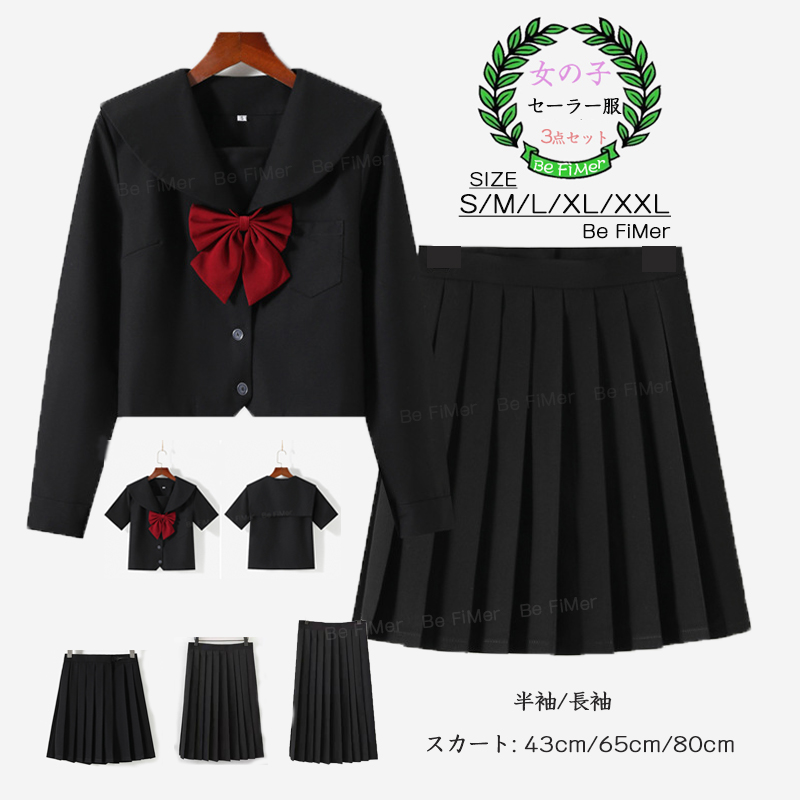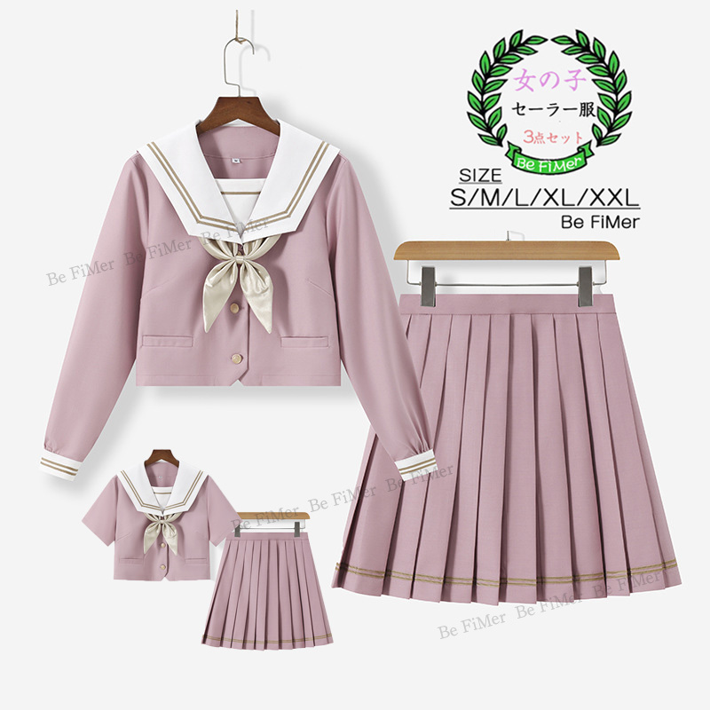 セーラー服女子高生スクール制服学生清純コスプレ 衣装上下セット 上衣 スカート春夏秋短袖長袖ハイソックス付属