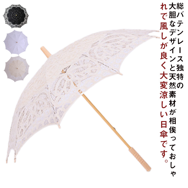 日傘 レース 遮光 カット 長傘 ベージュ ホワイト ブラックバッグ 小物 ブランド雑貨 傘 日傘