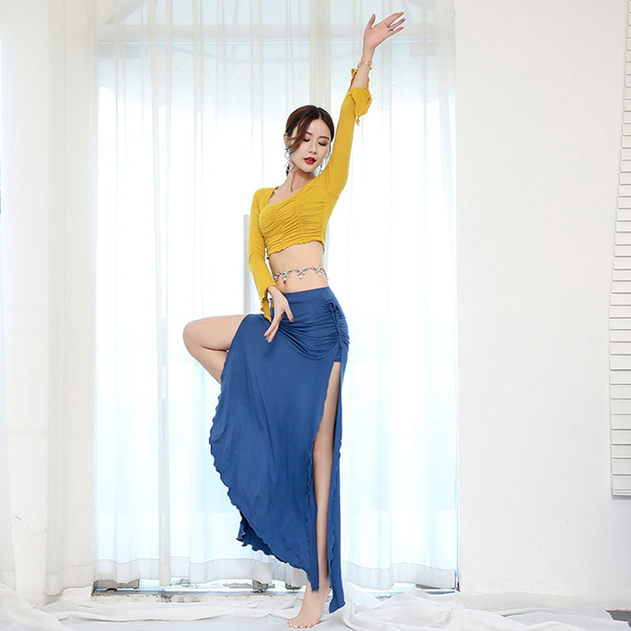 ベリーダンス 衣装 セット レッスン着 上品で清潔感のあるセットアップ おしゃれ ベリーダンス衣装 ストレッチ生地 長袖トップス インナーパンツ付き スリット スカート ロング丈 ベリーダンス 衣装セ