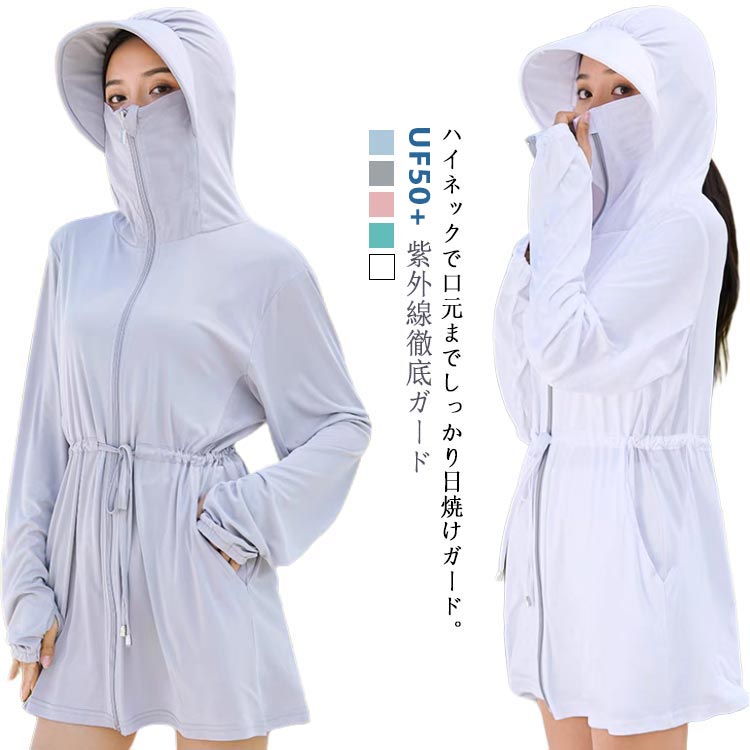 水着 日焼け防止 つば付き 速乾 ジップ 顔まで ラッシュガード 丈長め 通気性 ロング 長袖 UVカット 体型カバー レディース