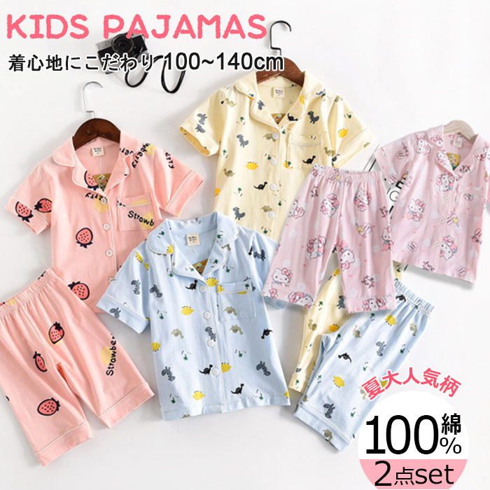 可愛いパジャマキッズ男児 女児 半袖 恐竜 ダブルガーゼ 上下セット 薄手 可愛いパジャマ 130cm 140cm 150cm 160cm 前開き お泊り学習林間学校修学旅行 男の子 女の子