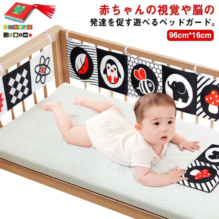 白と黒や赤色でベビーの視覚発達を促す 可愛いイラスト ぬのえほん 動物 ミラー 鏡 赤ちゃん シャカシャカ 音が出る ベッドガード ベビーベッド 柵