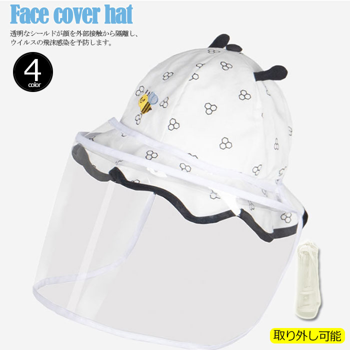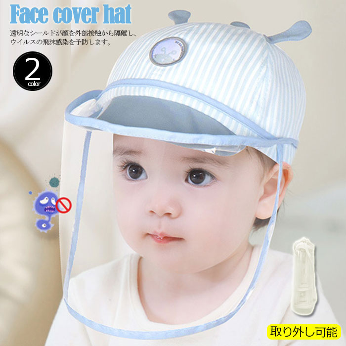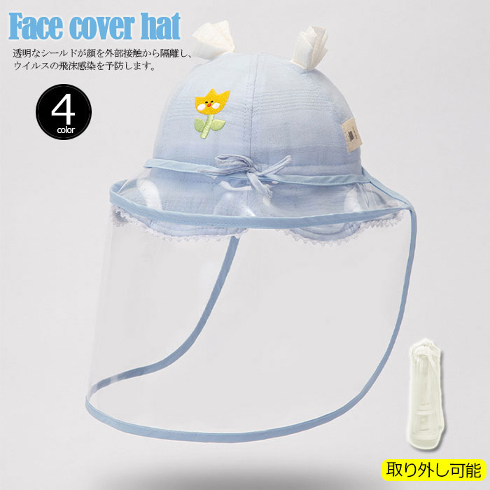 コロナ対策 赤ちゃん 子供 キッズ 帽子 ハット ウイルス対策 飛沫対策 キャップ ベビー 帽子 ハット かわいい フェイスシールド フェイスカバー 取り外し可能