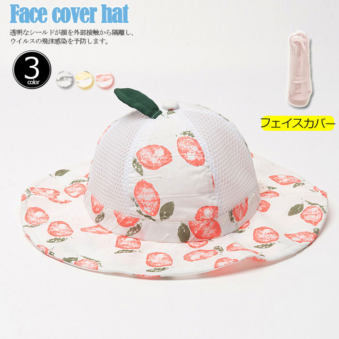 フェイスカバー付き 帽子 飛沫防止 ベビー キッズ 子供 男の子 女の子 つば広ハット おでかけ 子供用 フェイスシールド
