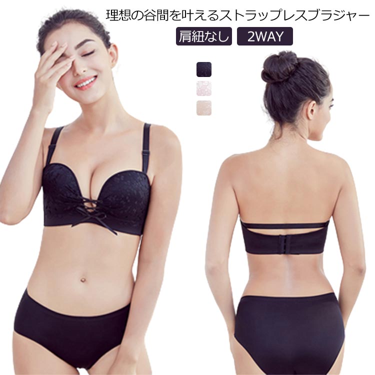 2 ずれない 落ない ストラップレス ブラ 背中見せ ブラジャー 肩紐なし フェミニン レース