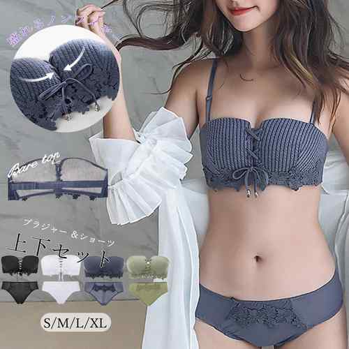 盛れる ブラトップ ベアトップ チューブトップ セクシーランジェリー 下着セット 大人韓国 レースアップ ブラセット安い 谷間綺麗 美胸ブラ 大人可愛いインナー 小胸