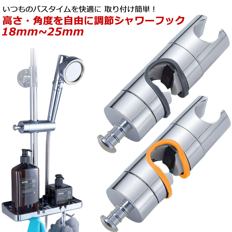 シャワーフック 簡単取付 360°自由回転 スライドバーに対応 シャワーホルダー シャワーヘッドホルダー 交換用 18~25 取り付け簡単 可変式 修理交換用 簡単取付 工事不要 高さ調整 耐