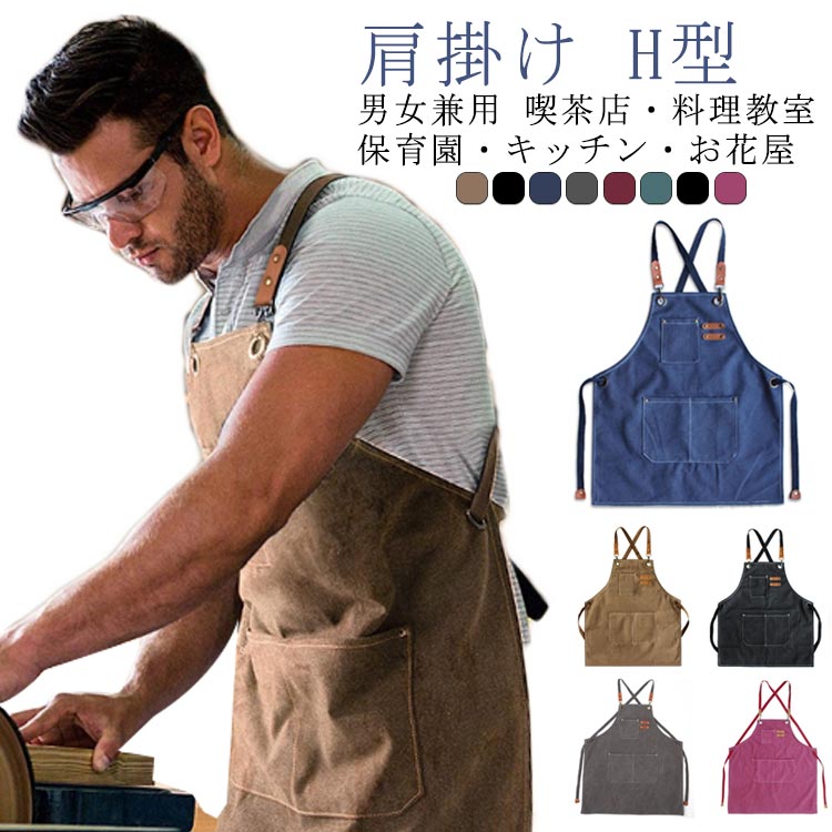 H型 職人 丈夫 キャンバス 無地 美容師 肩掛け ワークエプロン メンズ 厚手 作業エプロン 前掛け エプロン ズック 男女兼用 シンプル カフェエプロン 調整可能 動きやすい 女性用 仕事用 作業