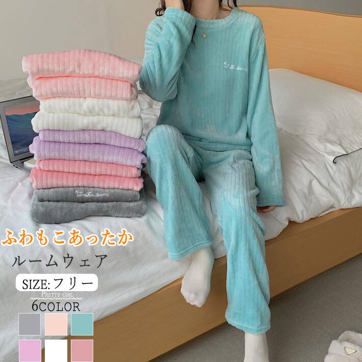 ルームウェア レディース シープボア あったか 暖かい もこもこ ルームウェア 上下セットセットアップ 部屋着 パジャマ ホームウェア トップス パンツロゴウエストゴム柔らかい 可愛い無地大きめ 春