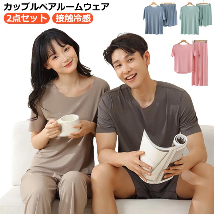 接触冷感 夏 カップル ペア ルームウェア パジャマ 夏用 上下セット 冷感パジャマ ルームウェア メンズ レディース 涼しい