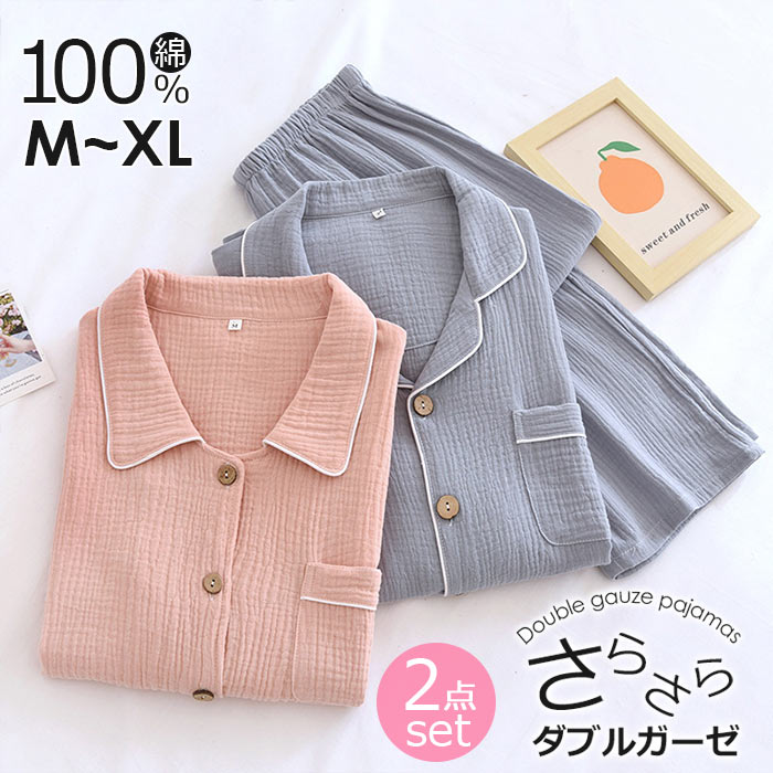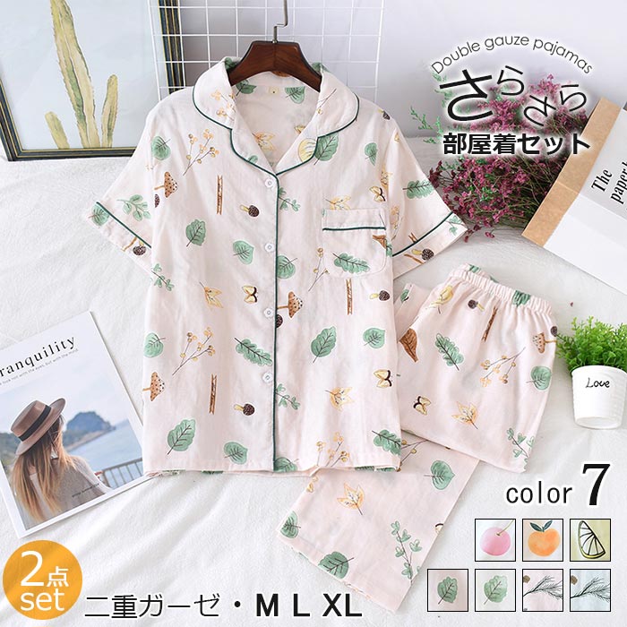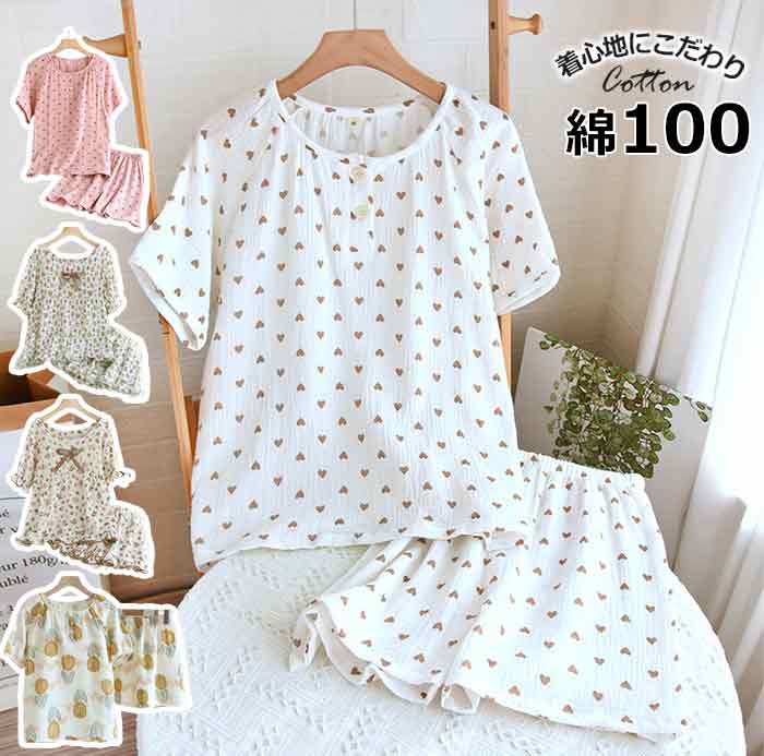 可愛いパジャマ女性 二重ガーゼダブルがーせ 半袖長ズボン 吸水性二重ガーゼ睡眠パジャマ女性20代30代40代 リラックスできる春夏に 可愛くて涼しい