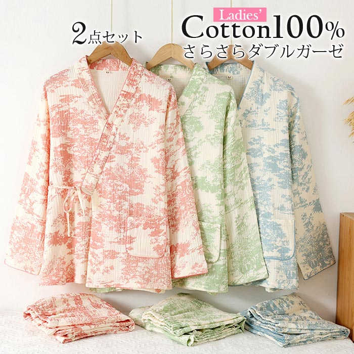 二重ガーゼパジャマ綿100 おしゃれ 母の日 プレゼントダブルガーゼパジャマ 二重ガーゼ ダブルガーゼ 丸首 ネック 花柄 和風パジャマ 春夏 薄手 涼しい