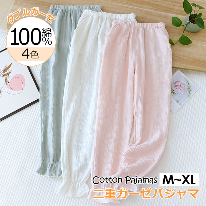 選べる4色 ダブルガーゼパジャマパンツ、シンプルながらも、可愛いデザイン、年中使える快適な一枚 インナー 下着 ナイトウェア レディース ナイトウェア ルームウェア ルームウェア ボトムス
