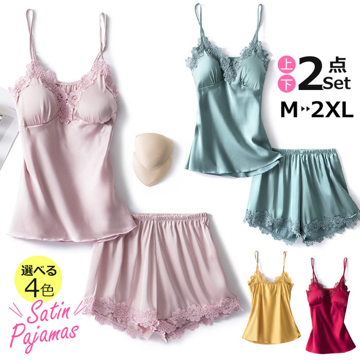 キャミソール カップ付 美盛り部屋着 セクシー ランジェリー 可愛い おしゃれ 綺麗 きれい 女性らしさ キャミソール 上下セット 韓国 合成シルク 涼しい