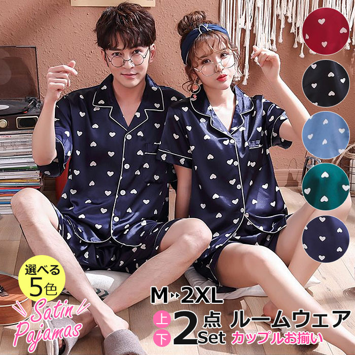 光沢感のある一枚、高級感あふれる ペアルック部屋着 半袖 セットアップ 夏を涼しく 柔らかい 清涼感 シンプル