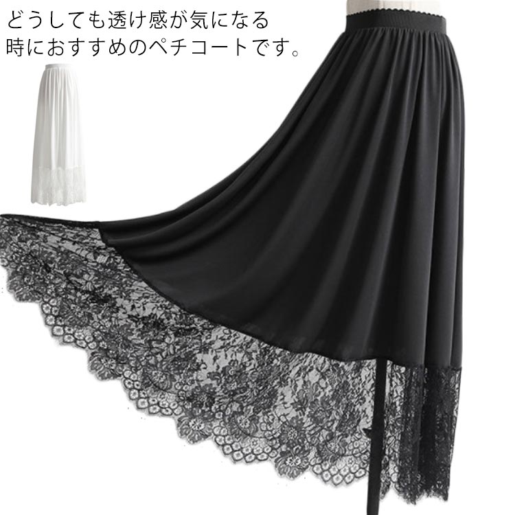 ぺチスカート ロング ペチコート 裾レース スカート 透け防止 重ね着 透け対策インナー 下着 ナイトウェア レディース インナー 下着 ランジェリー ペチコート
