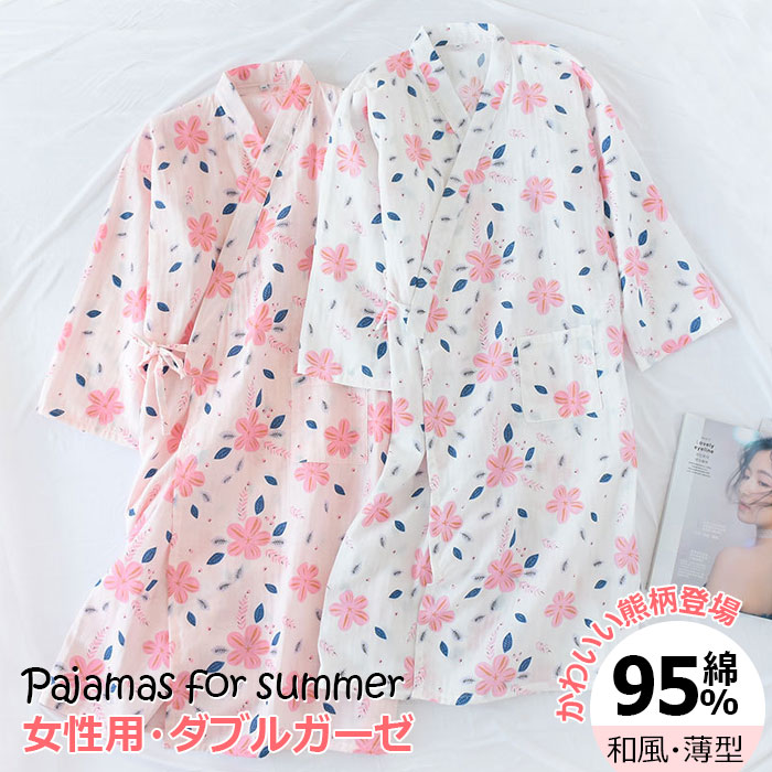 かわいい花柄部屋着お風呂上がり寝巻き ガーゼ 浴衣 旅館浴衣 和風パジャマ ダブルがーせインナー 下着 ナイトウェア レディース ナイトウェア ルームウェア ルームウェア 上下セット