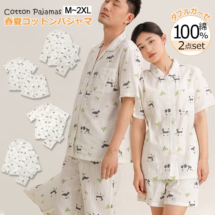 可愛いパジャマパンダ柄 ユニセックス 二重ガーゼ カップル ペア 部屋着 夫婦 ペア 和風パジャマ 前開き 記念日 カップル 父の日 母の日 敬老の日 半袖 半ズボン 長袖長ズボン