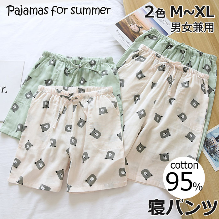 パジャマパンツ ナイトウェア ボトムズ オシャレ ルームパンツ キレイ 春夏 部屋着ショーツ ギフト プレゼント 桃柄 ダブルガーゼで涼しくて快適 通気性抜群