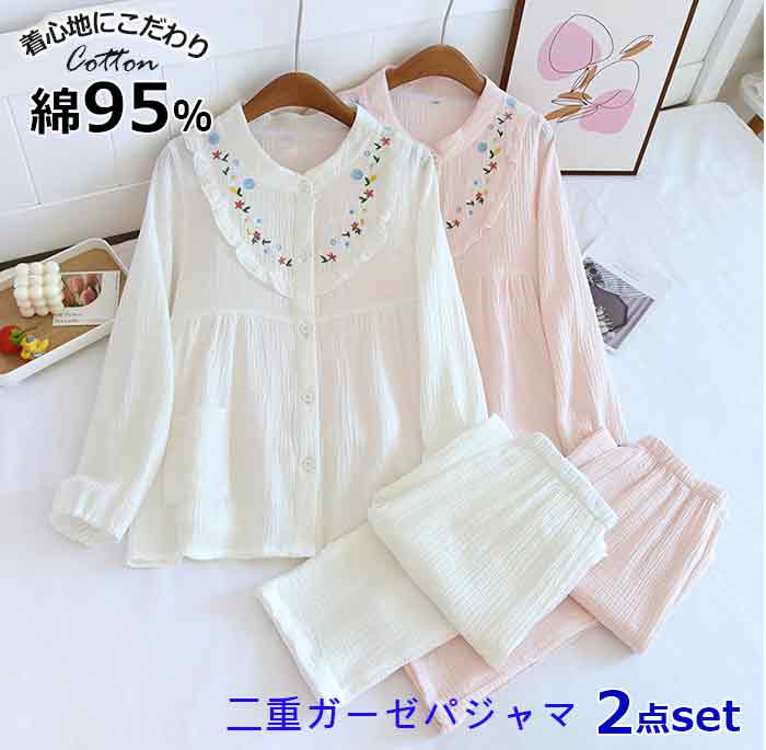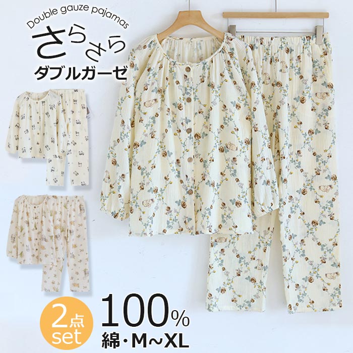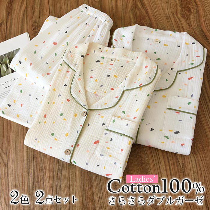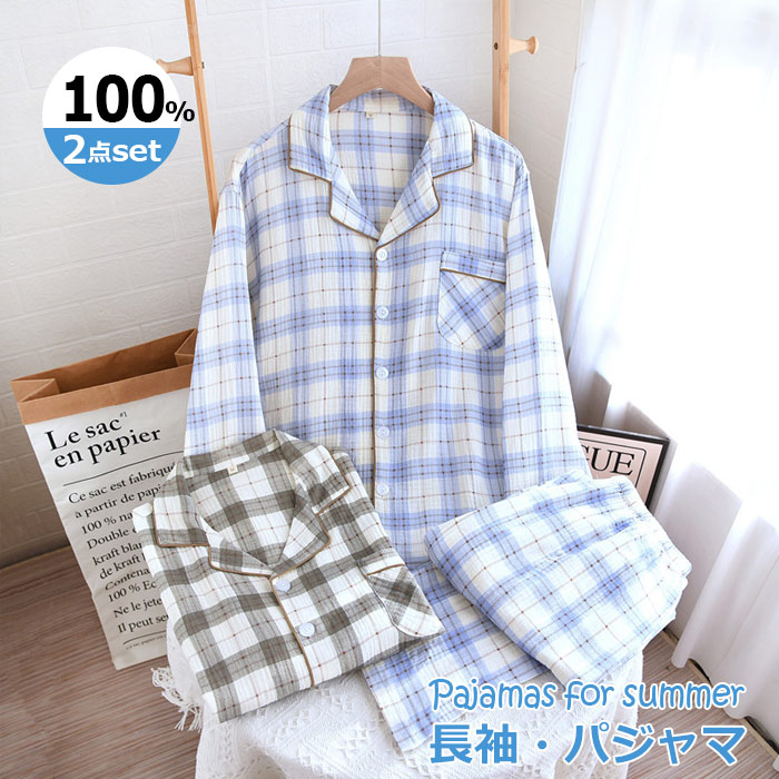 ダブルガーゼ ルームウェア ガーゼ パジャマ 綿100% 上下セット 2点セット 部屋着 ペアパジャマ 長袖 長パンツ ギフト 母の日 誕生日 プレゼント