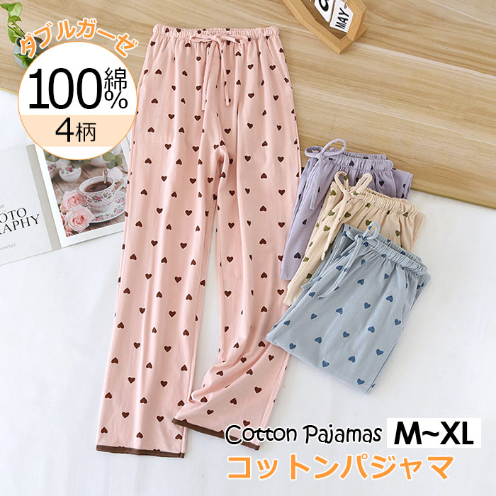 20代30代40代 おしゃれなルームウエアボトムス ロング丈 パンツだけ サラサラ 春夏用 二重ガーゼダ ブルガーゼ パジャマパン 可愛い 花柄 楽々