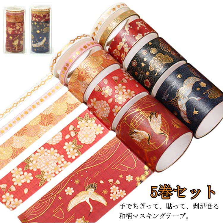 柄やサイズ異なる5巻セット 直接 貼る 付け 手帳テープフレーク 和紙 鶴 梅 ノート 日記 文房具