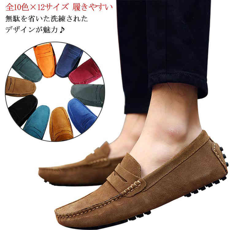 全10色×12サイズ モカシン スエードローファー 男性 高級感 履きやすい 黒 茶 紺 青靴 メンズ靴 ローファー