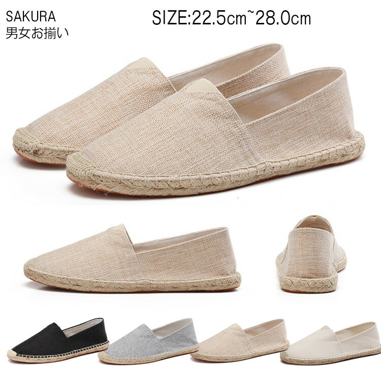 エスパドリーユ スリッポン レディース メンズ ジュート巻き スニーカー 靴 お揃い コーデ リンクコーデ ペタンコ ブラック 黒 グレー ベージュ カーキ 22.5cm~27.5cm 父の日 プレゼ