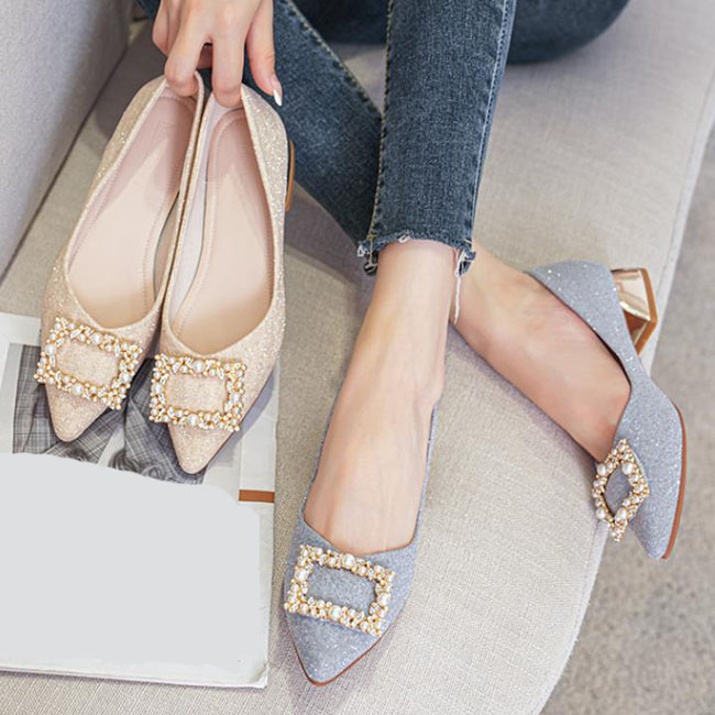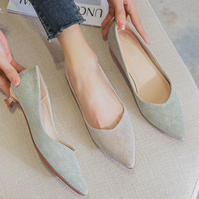 フラットシューズ レディース 痛くない パンプス 美脚 ポインテッドトゥ プレーン ベーシック きらきらラメ素材で華やかに 面接 オフィス 通勤 披露宴 謝恩会 2次会 ラインストーン 靴