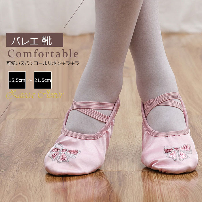 可愛いリボン付き 子供から大人 バレエシューズ 16.5cm~22.0cmスポーツ アウトドア 体操 ダンス バレエ バレエシューズ