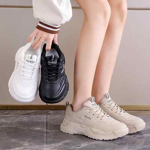 厚底スニーカー 疲れない 通勤通学靴 ウォーキング 履きやすい PUレザー ハイソール靴 韓国ダッドシューズ 歩きやすい スニーカー白 運動 レースアップくつ カジュアルシューズ
