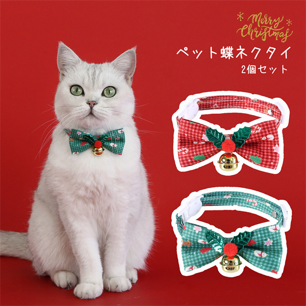 猫蝶ネクタイ 犬ネクタイ 二個セット クリスマス風 猫 犬 キャット ドッグ 蝶ネクタイ 可愛い かわいい おしゃれ 肌に優しい
