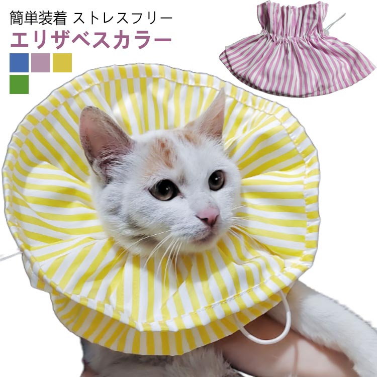 ストレスフリー ソフトタイプ スタイとしても使用可能 ストッパー付き ストライプ かわいい ひっかき防止 術後ウェア 怖がらない ゴム 調節