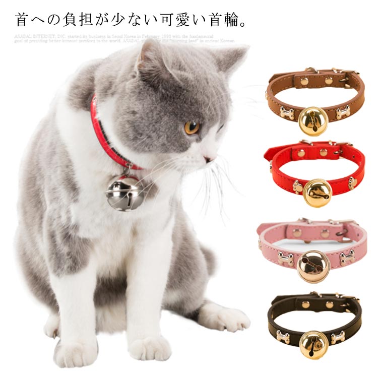 大きな鈴付の可愛いレザー首輪 犬猫兼用 ねこ ワンちゃん おしゃれペット ペットグッズ 猫用品 首輪 ハーネス 首輪