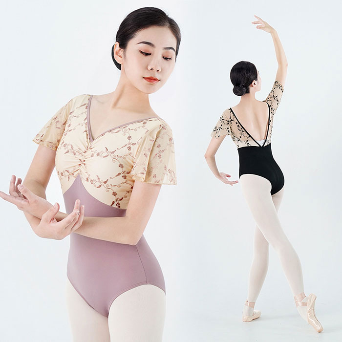 バレエ レオタード 大人 繊細な花刺しゅう おしゃれ バレエレオタード レディース ジュニア スカートなし フレアスリーブ エレガント かわいい 上品 レオタード ダンス 衣装 発表会 レッスン バレ
