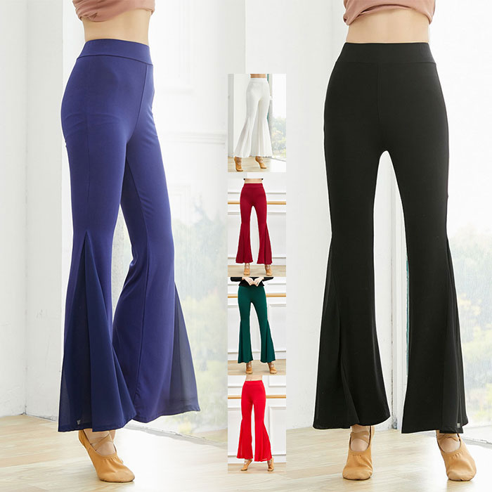 ダンスパンツ 社交ダンス ダンスウェア ヨガパンツ レディース ズボン ダンス 衣装 ブラック 黒 ロング丈 ストレッチパンツ ジャズダンス ブーツカット ウエストゴム レディース ダンス衣装 レッス