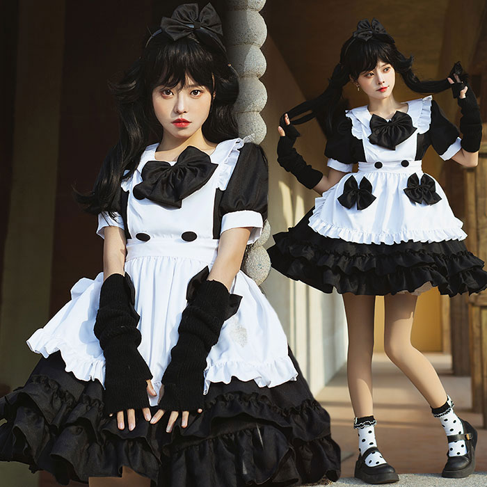 コスプレ メイド服 仮装 コスチューム ハロウィン衣装 レディース タイト セクシー 可愛い 大人 コスプレ 文化祭 イベント レディース 可愛いメイド 衣装 セット ブラック ゴスロリ ロリータ エ
